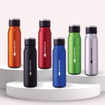 Ready to Order Your Custom Branded Water Bottles? This 700 ml / 24 oz Straight Shooter is a single wall, impact resistant bottle made from BPA-free Eastman TRITANTM copolyester. It features a matte metallic finish paired with a matte black and silver accented leakproof screw-on lid. Decorate the Straight Shooter’s shimmering finish with our default silk screen branding method or upgrade to multicolor silk or wrap