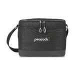 An innovative placemat cooler design for everyday use. Placemat style zippered opening that folds down flat into an easy-to-clean eating area. Fold out flaps with slash pockets with added utensil storage pocket. Interior bottle strap to hold beverage in place. Side mesh stash pockets perfect for storing snacks or accessories. Adjustable shoulder strap.