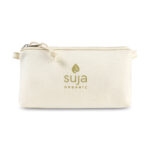 Eco-friendly pouch is made with certified bamboo fiber fabric, making it natural and sustainable. Bamboo is a fast-growing plant that thrives without fertilizer or pesticides, making it the perfect resource to harvest again and again. Zippered opening to main compartment. Raw metal hardware can be recycled. Interior print illustrates sustainable bamboo material story. Perfect for organization.