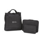 Optimal storage solutions for the mobile professional. Front zippered pocket. Dual zippered main compartment includes a laptop pocket (fits up to a 15” laptop). Includes 2 separate solutions for added organization: padded laptop commuter sleeve with interior multi-functional organizer (fits up to a 15” laptop and 10″ tablet), large zippered pouch for storing gadgets and accessories.