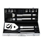 The Cuisinart® Deluxe 14 Piece Grilling Tool Set includes all the necessary tools to make your grilling experience easy and convenient. This durable set of stainless steel tools includes a Chef’s Spatula, Grill Tongs, Silicone Basting Brush, Cleaning Brush, Extra Cleaning Brush Head and 4 Pairs of Corn Holders. Each tool is designed with elongated handles and a hanging ring for convenient placement during grilling time.
