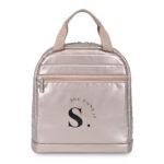 Carry your lunch and snacks with a touch of metallic flair. The Aviana™ Metallics Cooler Collection features quilted details, satin nickel accents, and soft fabric. Dual zipper opening allows for easy organization. Interior bottle sleeve holds the Aviana™ Palmer or other similar bottle shapes upright. Front zippered pocket perfect for storing cash, credit cards, or keys. Top grab handles for easy carrying