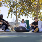 Massive sound. All day long. We just made our most powerful portable Bluetooth speaker even better. The iconic silhouette of the JBL Boombox 3 has a bold new update featuring a sturdy metal handle with silicone grips, twin sidecaps, and waterproof and dustproof signature fabric. It’s been redesigned inside too, added with a new subwoofer unleashing much deeper bass and massive JBL Original Pro Sound, all with lower distortion. And 24 hours of play time takes you all the way from your morning workout to a late-night hang with your friends. And for sound that’s practically limitless, instantly connect multiple speakers with the JBL Portable app.